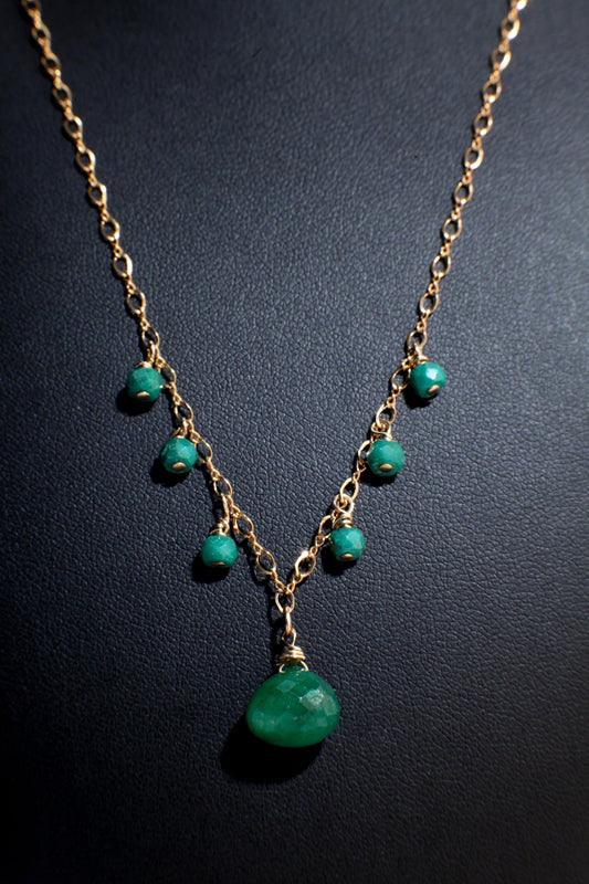Emerald Briolette Necklace, Natural Emerald Faceted Onion Shape Teardrop & Rondelle Dangling, 14K Gold Filled Figure 8 Gemstone 18" Necklace
