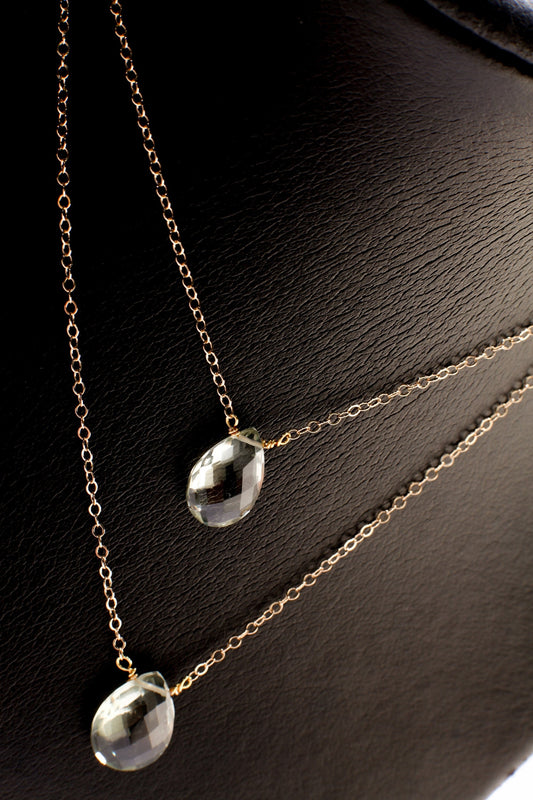 Green Amethyst drop cut Faceted Wire Wrapped Pendant, 10x14, 12x16mm AAA Natural Prasiolite Cut gems Briolette in 14K Gold Filled Necklace,