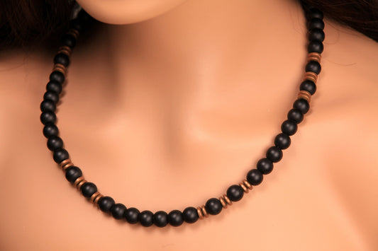 Matte Black Onyx and Antique Copper Matte Hematite spacers Men Necklace, energy protection gemstone
