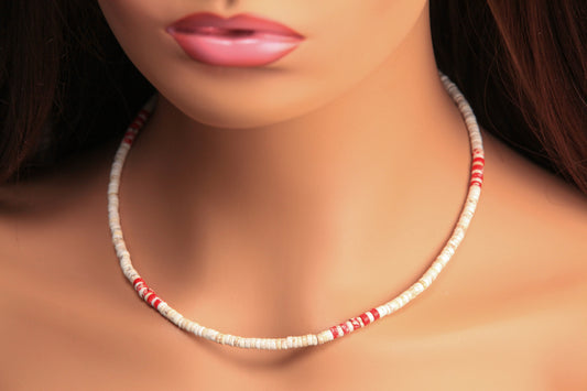 White Turquoise 4mm Heishi with Red impression jasper spacer Silver Necklace, for Man and Woman.
