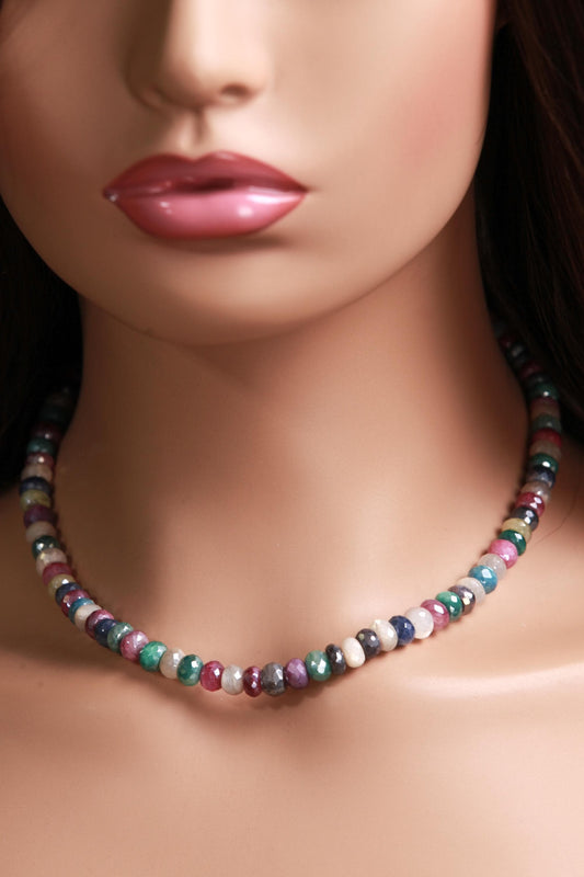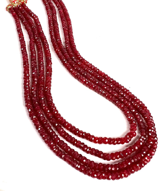 AAA Natural Ruby Faceted Roundel 4-4.5mm Multi Strand 4 Line Necklace. Bright Rich Red 16” Plus 9" Adjustable Thread. 403 carats