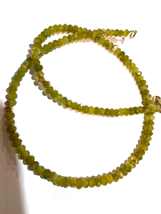 Natural Serpentine Olive Jade 4mm faceted Gold spacer handmade olivine necklace Gift Olive green chakra energy