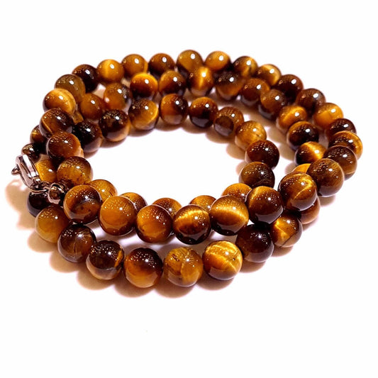 Natural Tiger Eye 8mm Smooth Round Choker, Layering Necklace in Sterling Silver, Chakra, Prosperity Gift