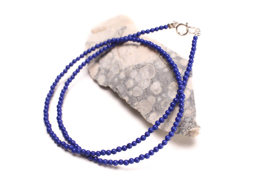 Genuine Lapis Lazuli 2mm smooth Round royal blue with 925 Sterling clasp Choker, Layering Necklace Gemstones gift for Man and women
