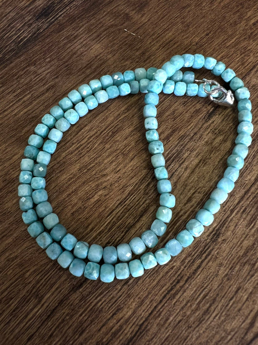 Larimar cube shape dice 4-4.5mm beaded necklace for Man and woman with 925 sterling silver lobster clasp, beach boho summer gift