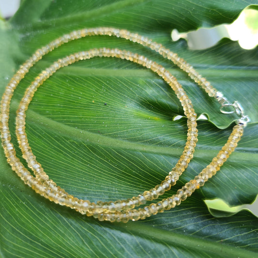 Natural Citrine Faceted 3.5-4mm Rondelle Choker, Layering yellow Necklace in 925 Sterling Silver AAA quality Birthday, Woman gifts
