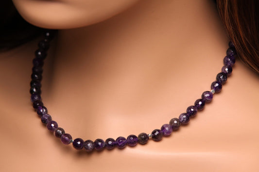 Natural Amethyst Purple 8mm Faceted Round beaded Choker, Layering Necklace, February birthstone 14"- 30"