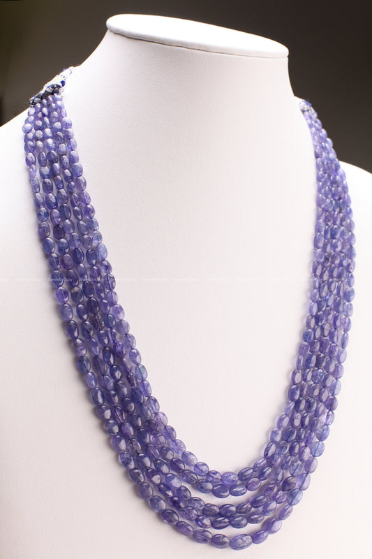 Natural Tanzanite 5 line Smooth Oval 7-10mm Necklace,16" -18"AAA quality natural Tanzanite oval bead with long adjustable Thread to 30"