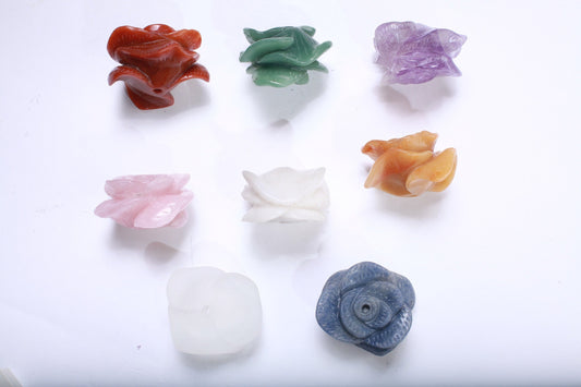 Amethyst, Aventurine, Rose Quartz, White Jade, Ambronite Flower Rose Bead | Floral Vintage Hand Crafted Half Drilled Meditation Gemstone 1PC