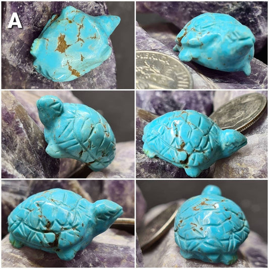 Hand Carved Natural Turquoise Sea Turtle Totem, Miniature Animals Collectible Figurines Vintage Sculpture, Old Stock