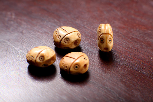 Carved Buffalo Bone Hand Craved Lady Bug, 12mm Top To Bottom Drilled Polished Double Sided Puffed Handcrafted Bead Charm, Art Deco