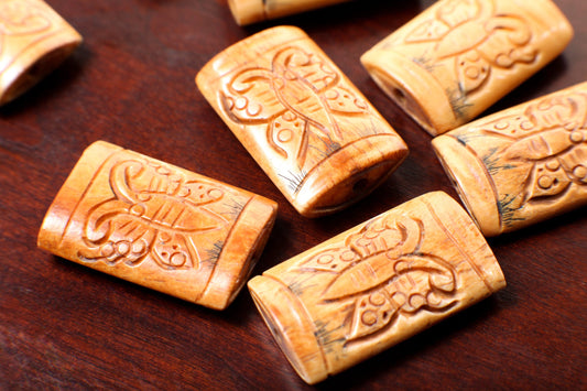 Carved Buffalo Bone Hand Craved Butterfly, 20x30mm Carved Rectangular Double Sided, Drilled Bead Pendant, Art Deco