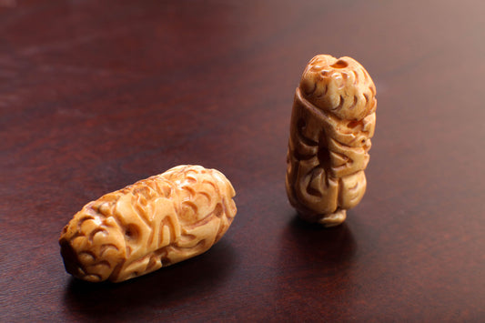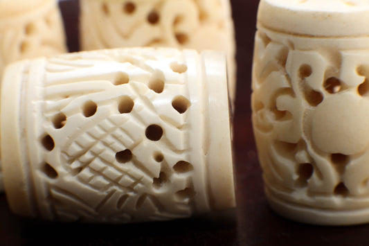 Carved Buffalo Bone Barrel 28x35mm, Hollow Drilled Bead, Art Deco