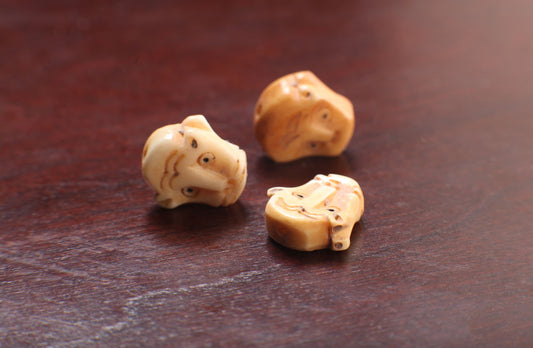 Carved Buffalo Bone Hand Craved Monkey Head, 12mm Top To Bottom Drilled Polished Double Sided Handcrafted Bead Charm, Art Deco