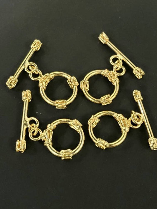 22K Gold Vermeil 925 Sterling Silver Bali Toggle Clasp, 18mm Circle, heavy weight, Vintage Handmade Clasp, 1 set or Bulk