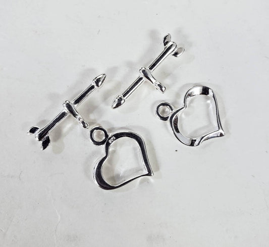 925 Sterling Silver heart shape shiny toggle clasp, 13mm heart and 29mm bar, jewelry making clasp, 925 stamped, 1 set or bulk