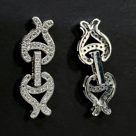 Cubic Zirconia CZ micro Pave Diamond Style sterling silver rhodium Fancy Clasp 12x27mm long. High End Jewelry Making, Folding clasp