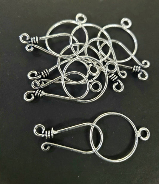 925 Sterling Silver Bali Hook and Eye clasp. 22mm long hook and 16mm circle, handmade, vintage jewelry making clasp 1 set or bulk