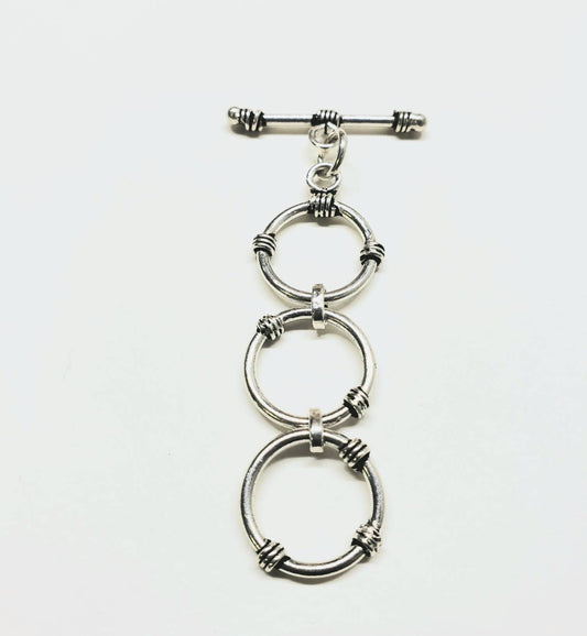 925 sterling Bali silver 3 ring adjustable toggle clasp .14mm each circle . Jewelry making clasp of 1 set .