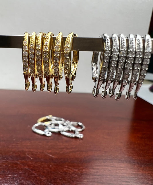 Cubic Zirconia CZ Micro Pave Diamond Rhodium Silver, Gold, Black Rhodium Round Huggie Hoop Hinged Leverback earrings findings, Sold by Pair
