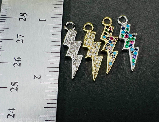 Cubic Zirconia micro pave diamond style Flash charm Gold electroplated pendant for Jewelry pieces 8x26mm long with ring anti tarnish