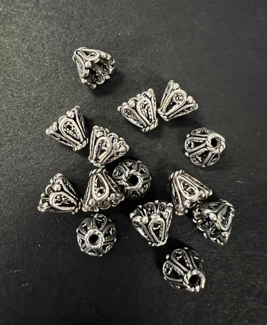 4 pcs 925 Sterling Silver 6x7.5mm filigree Cone shape Bali bead Cap, Vintage, Antique Heavy Weight , Handmade ,Jewelry Making Bali bead cap