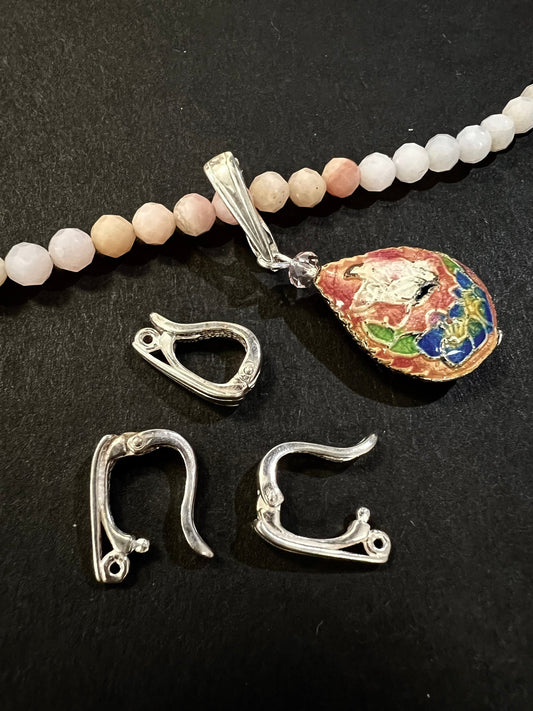 925 Sterling Silver Enhancer Hinged bail, interchangeable pendant Bail, 8.6x13mm pendant holder. snap on Bail, 1 Piece/Bulk Price