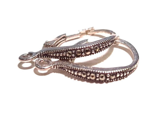 Marcasite Leverback 925 sterling silver earrings findings 12x19mm, Vintage antique Marcasite earrings findings ,925 stamped, 1 pair.