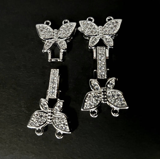 Cubic Zirconia CZ Micro Pave Rhodium Sterling Silver Diamond Style Butterfly Fancy Clasp 14x31mm long, High End Jewelry Making,Folding Clasp
