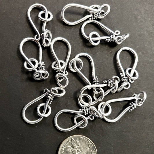 925 Sterling Silver Bali Hook clasp. 20mm long hook , plus include 2 side Jump ring, handmade, vintage jewelry making clasp 1 set or bulk