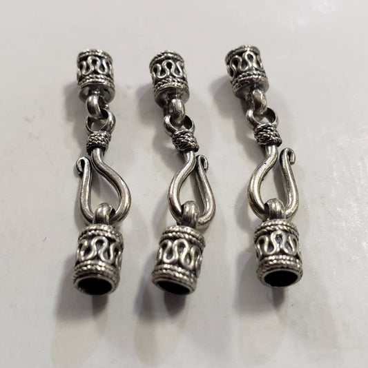 925 Sterling Silver Bali end cap with hook Clasp and ring Inside diameter 2.7mm leather, rubber, cord. Glue on vintage clasp, 1 set