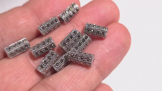 925 Sterling Silver Marcasite tube 5x10mm, 1mm Inner Diameter, Vintage Antique Handmade Designed jewelry making spacer noodle, 925 stamped