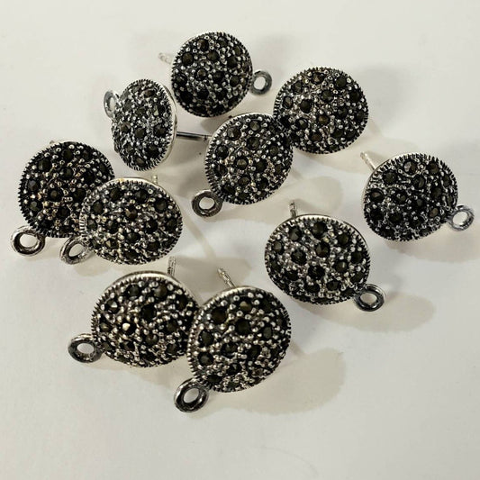 Vintage Marcasite 925 sterling silver 12mm disc earrings post, antique earrings making findings 1 pair, 3 pairs