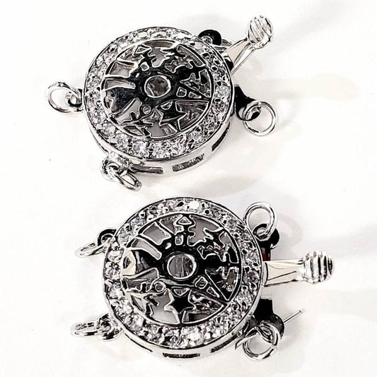 Cubic zirconia cz rhodium sterling silver turtle shape 14mm round 3 loop multi strand fancy clasp, jewelry making Bracelet clasp. 1 pc