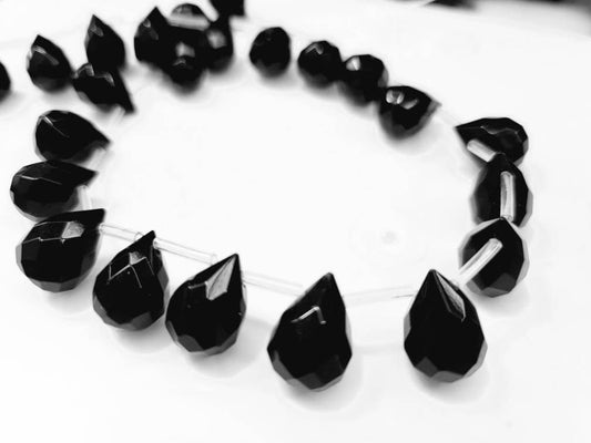 Natural Black Onyx 10x14mm faceted briolette drop beads,Natural gemstone for jewelry making Necklace Earring art deco, 1 strand 8 pcs