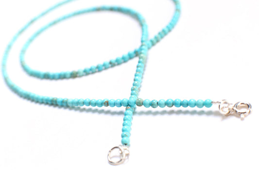 Natural Blue Turquoise Sleeping Beauty 2mm Faceted Round sterling Silver Clasp Dainty Choker Layering Elegant Necklace, December Birthstone