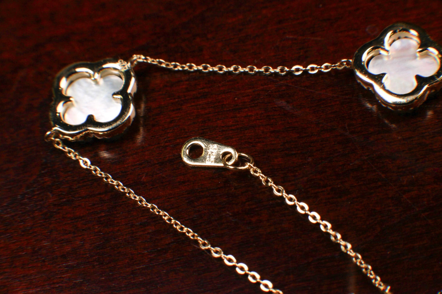 22k Gold Vermeil over 925 Sterling Silver Mother of Pearl Flower Charm CZ Adjustable 7”to 8.25" Gold Bracelet