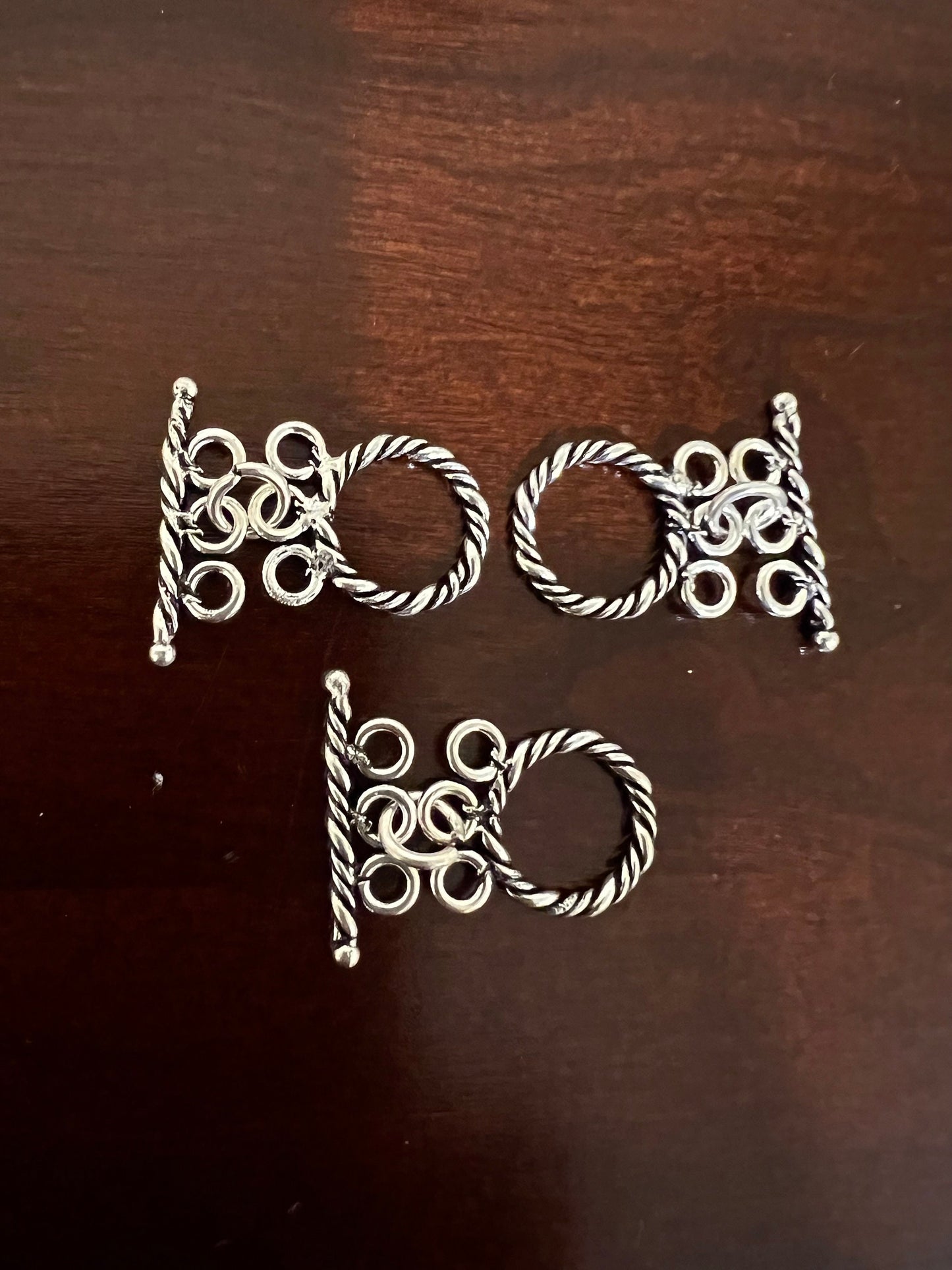 925 Sterling silver 14mm circle 3 loop toggle clasp , vintage handmade bali silver toggle jewelry making clasp.