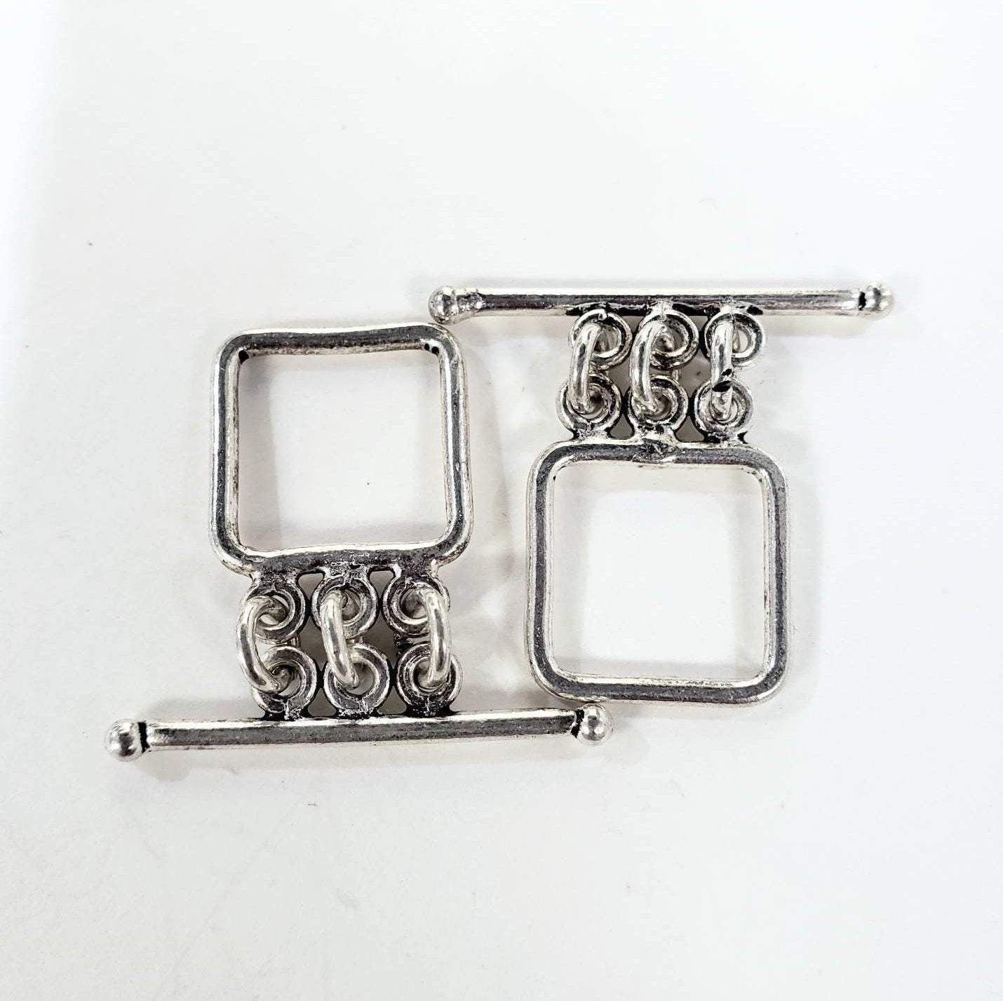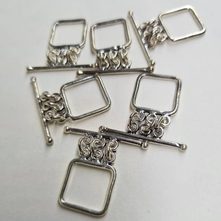 925 Sterling silver 3 loop square 15 mm bali silver toggle clasp, necklace bracelet jewelry making findings.