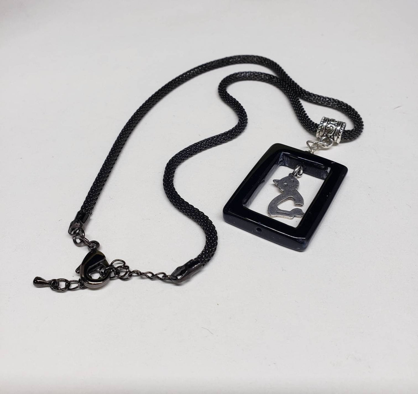 925 sterling silver cat charm in black onyx frame with gunmetal black chain 20"(18"& 2" Extension ) Cute cat, Cat lovers necklace gift
