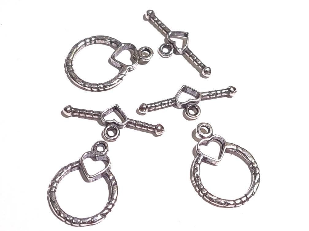 925 Sterling Silver Heart Toggle Bar Clasp 13mm Antique Finished, Oxidized Silver Jewelry Making Clasp, 925 Stamped, 1 set
