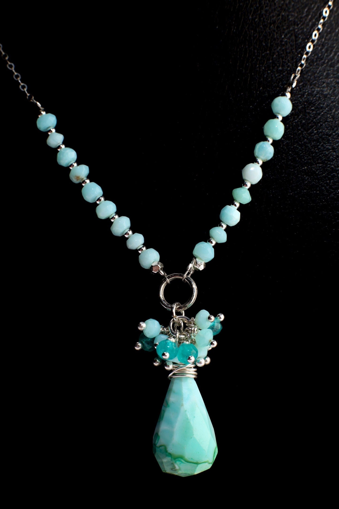 Materials: gemstones, blue opal, Peruvian Opal, Blue Andean Opal.