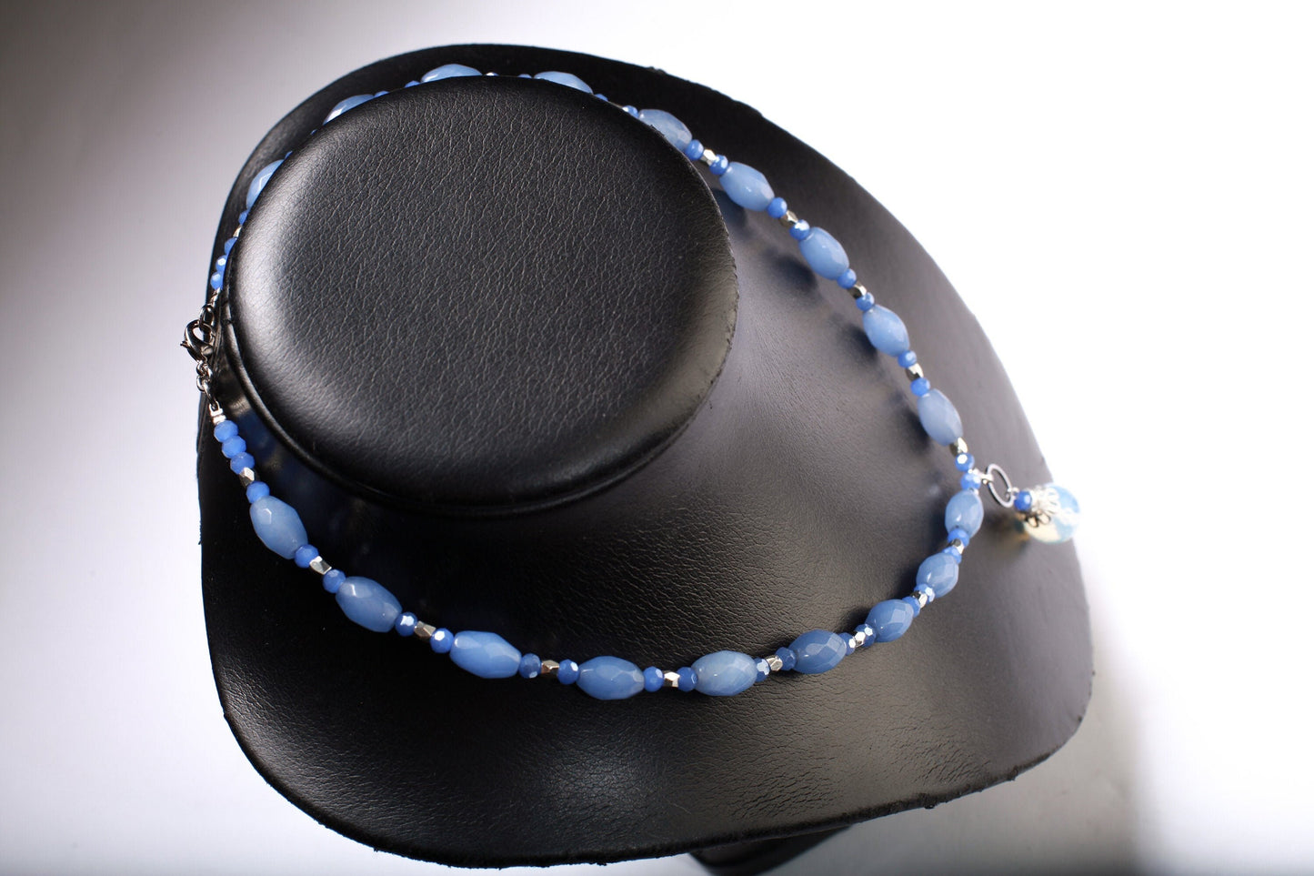 Blue Quartz Faceted Oval accent with Stunning Opalite bead 18" Gemstones Necklace