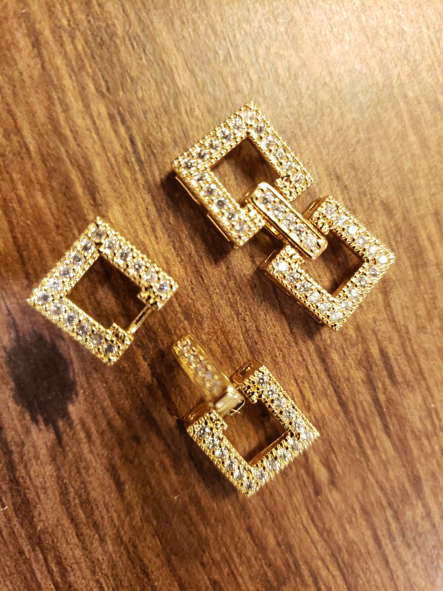 Cubic Zirconia CZ Diamond Micro Pave Sterling Silver Rhodium Square Fancy Enhancers Clasp, High End Jewelry Making Clasp, 8x19mm