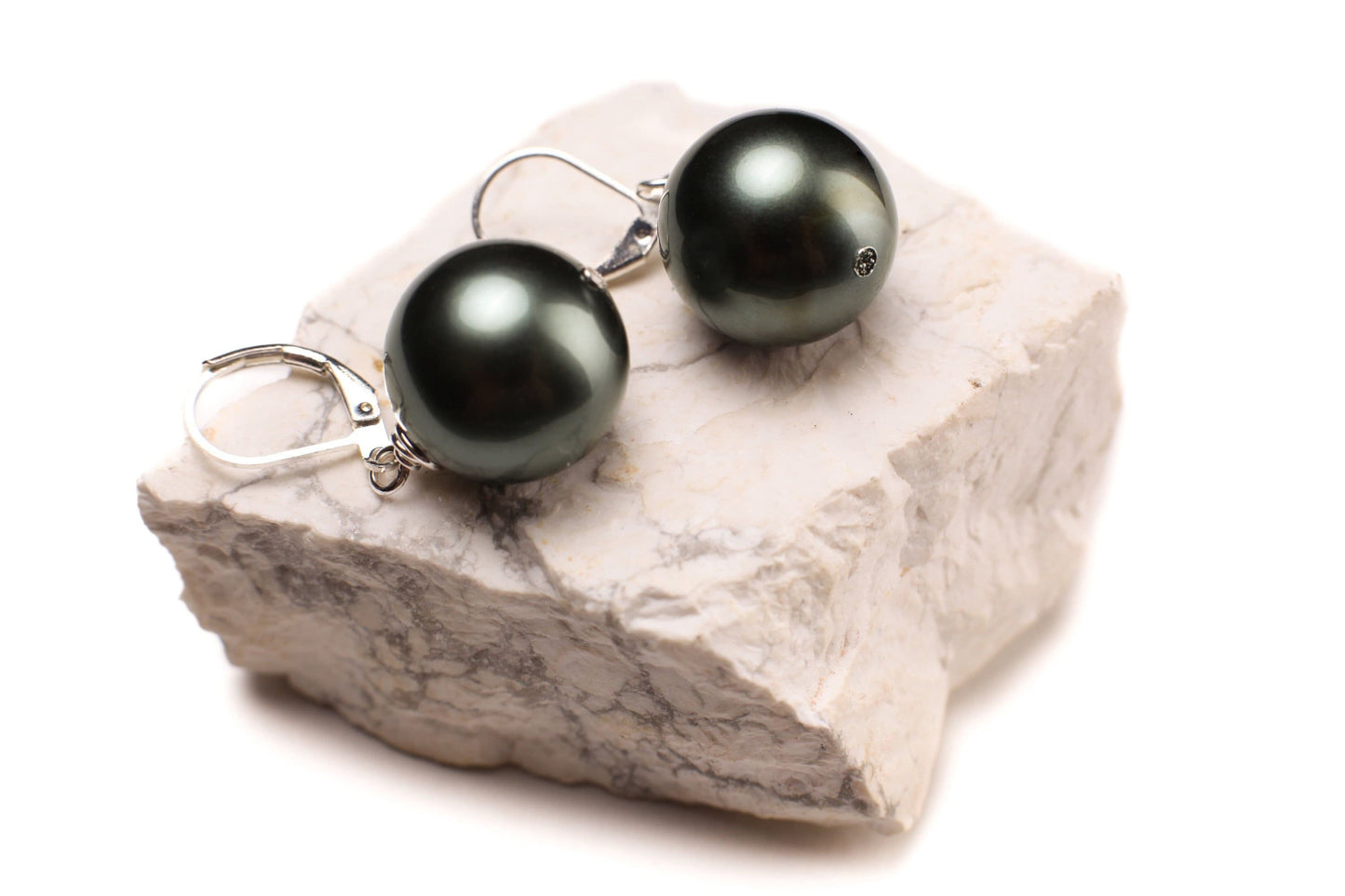 Dark Teal Green South Sea Shell Pearl 16mm high luster Leverback Earrings, Boho, Handmade Gift for Her