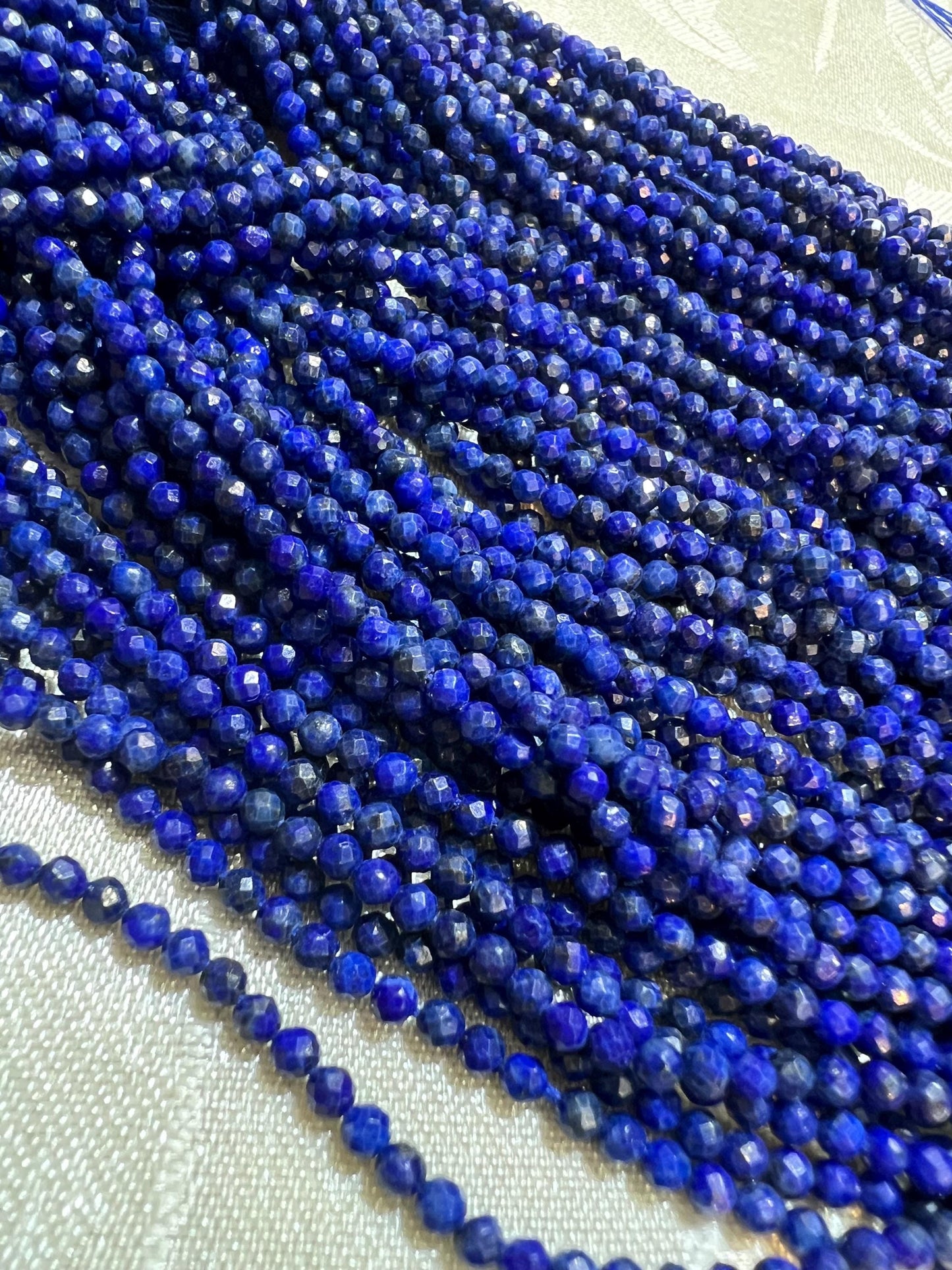 Genuine Lapis Lazuli 2.5mm Faceted Roubd Royal Blue Lapis Beads Jewelry Making 13”Strand