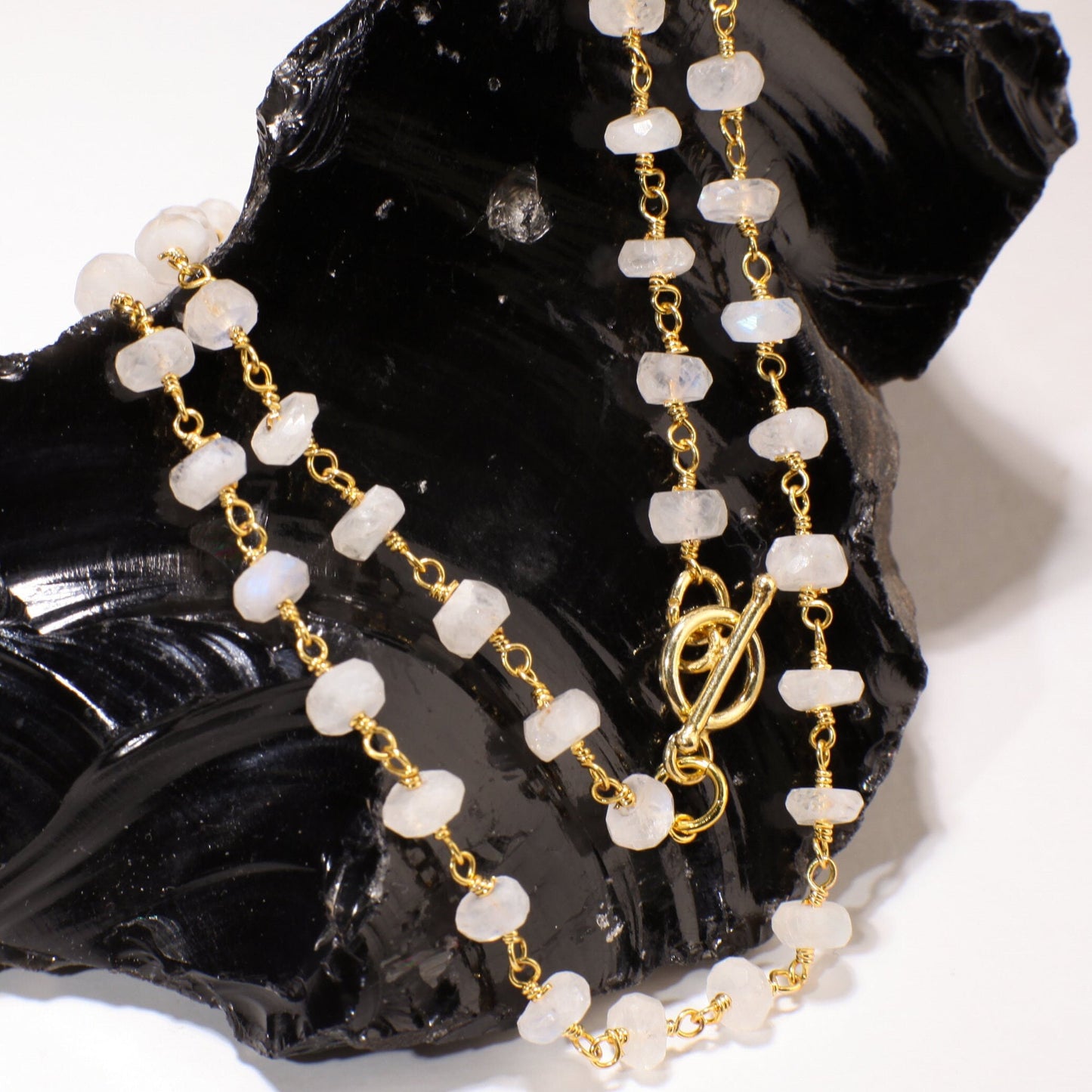 Materials: Moonstone, Gemstone chain, Rosary chain.