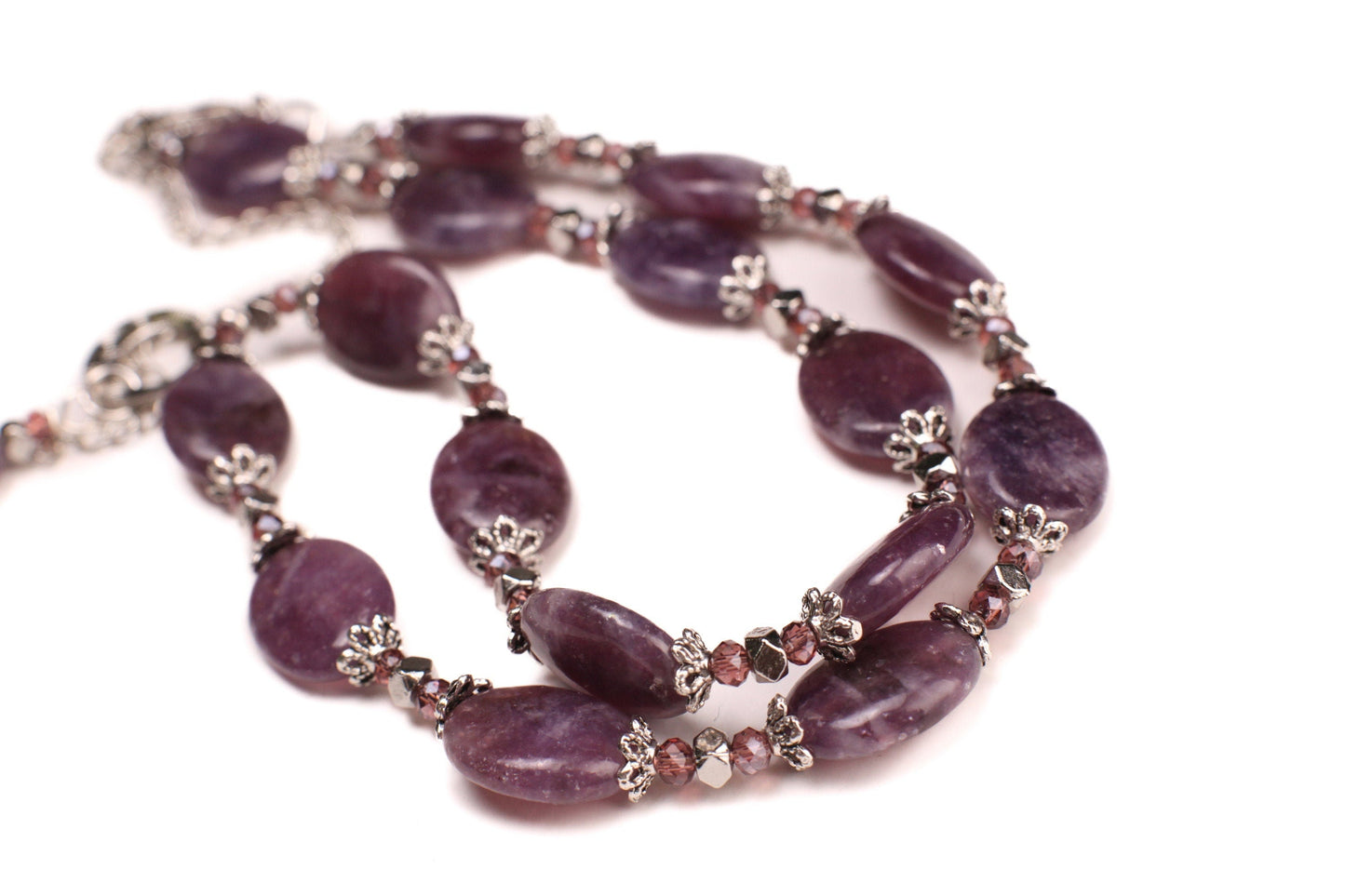 Materials: Natural Gemstone, Rhodium silver, purple crystal, Lepidolite.