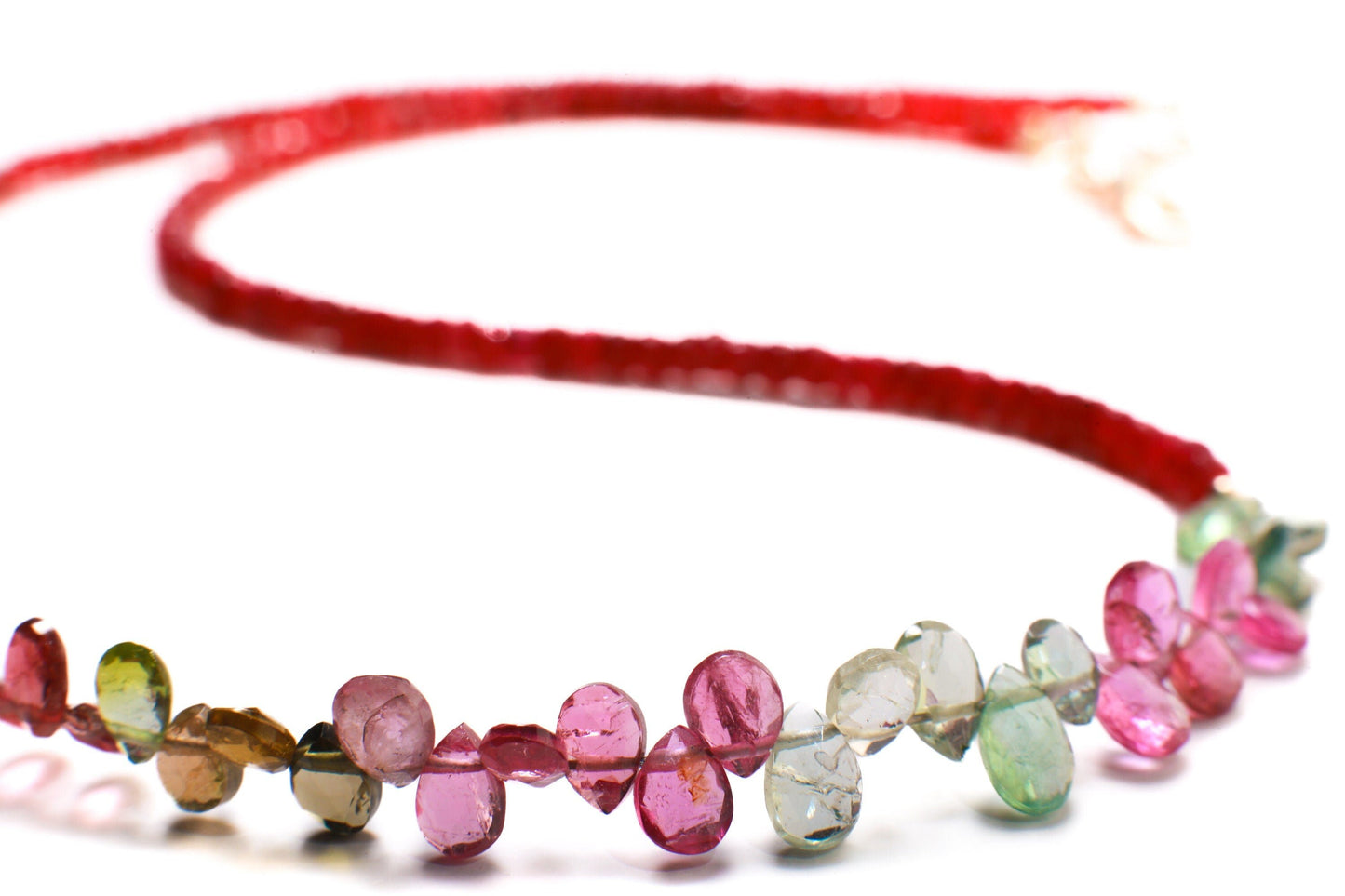 Natural AAA Tourmaline Briolette Teardrop with Faceted Genuine Ruby in 14K Gold Filled 16"-24" Necklace, precious Gift For Her,