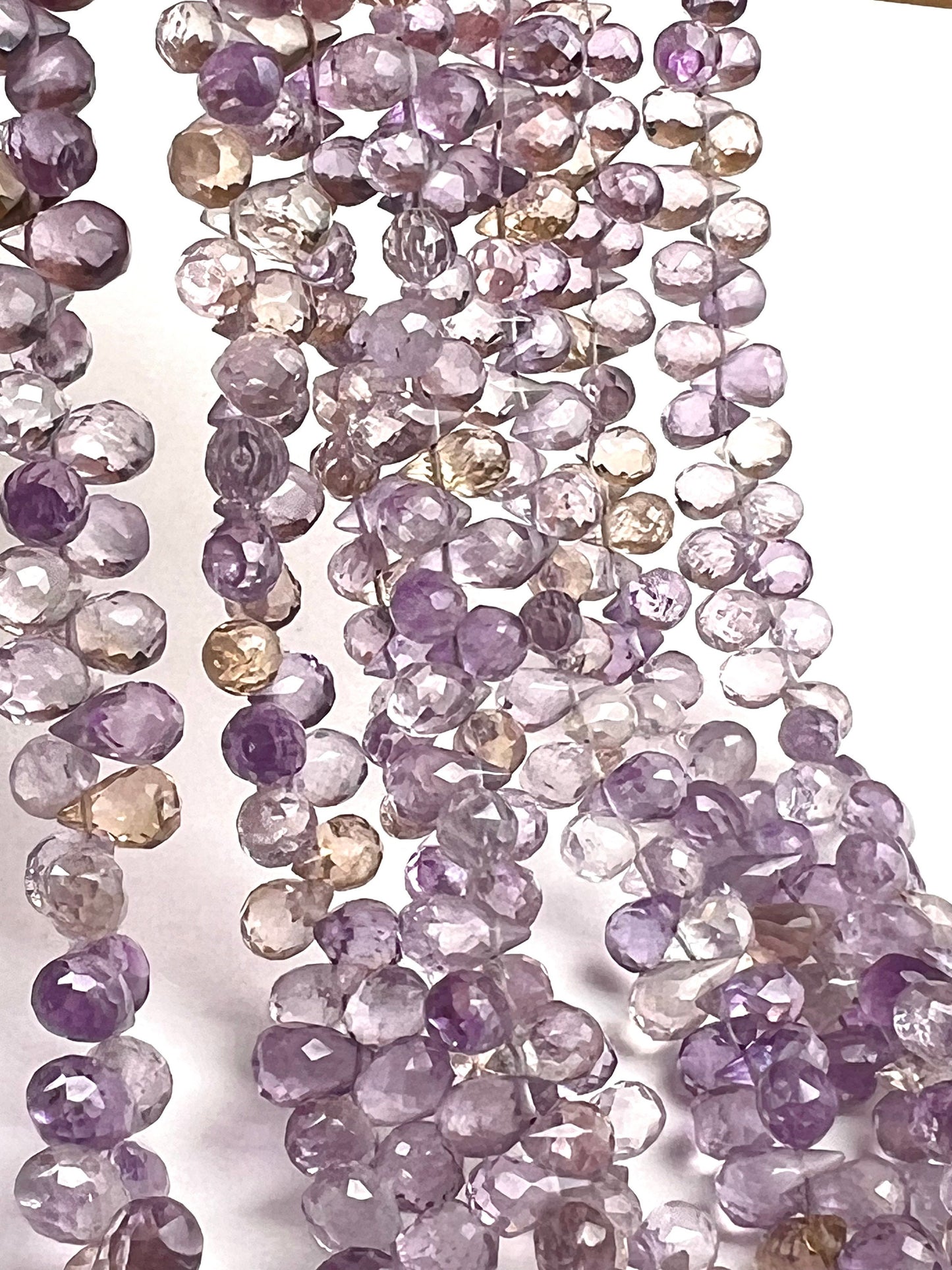 Natural Ametrine Faceted Briolette drop Purple Yellow Beads. Drop shape 3.5-5.5x7.5mm
